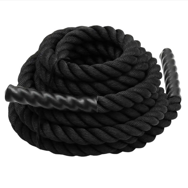 エクササイズバトルロープ ブラック 9m 柱固定ベルト付き 全身を鍛える 上半身 下半身 体幹 内容品 バトルロープ×1、固定用アンカーベルト×2、カラビナ×1 サイズ バトルロープ:全長約9m×太さ約4cm アンカーベルト:長さ約40cm×幅約4cm ロープ重量:約7.2kg 素材:ポリエステル ※バトルロープアンカーを柱やポールに取り付ける際は、しっかりと固定できる構造物をご利用ください ※バトルロープアンカー2本1組(カラビナ付)で固定できるバトルロープは1本です 【自宅やジムで本格的なトレーニング!】 全身運動に効果的なトレーニングアイテム「バトルロープ」。 ロープの端を持ち上下に振ることで、全身の筋力・体幹・バランス・心肺機能までしっかり鍛えられます。振り方次第で鍛えられる部位が変わるため、目的に応じたトレーニングが可能。 広いスペースと柱があれば、すぐに本格トレーニングをスタートできます。 9mタイプの本製品は、高密度ポリエステル素材を使用し、汗を吸収しにくく長時間の使用でも快適。グリップ部分にはラバーコーティングを施し、滑りにくくしっかり握れて安心です。 【便利な柱固定ベルト付き】 付属のアンカーストラップでポールや柱に簡単に固定でき、安定したトレーニング環境を構築できます。 自宅・ジム・屋内外問わず、初心者から上級者まで幅広く活用できる本格派のフィットネスロープです。