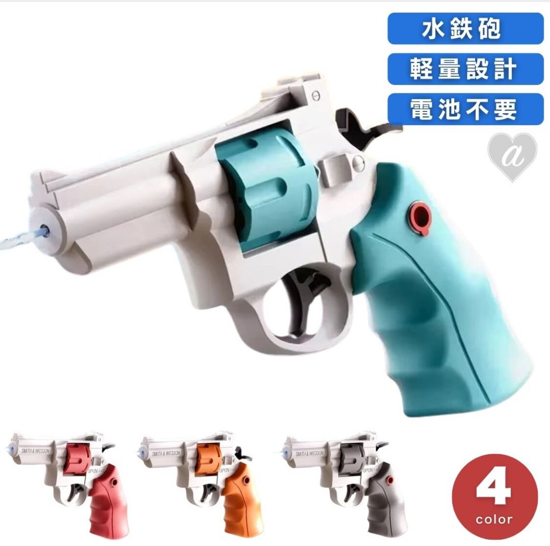水鉄砲 リボルバー式 シリンダー回転 4色 ウォーターガン 水遊び ビーチ プール お風呂 屋外 子ども こども