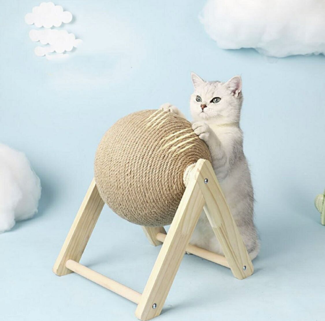 【材質】ロープを巻いてある球型ねこちゃんの爪とぎです。ボールは回転します。爪がひっかかりやすくバリバリと気持ちよく爪とぎができます。段ボール製の爪とぎと比べて長時間使用できます。クズも出にくく耐久性に優れた素材です!