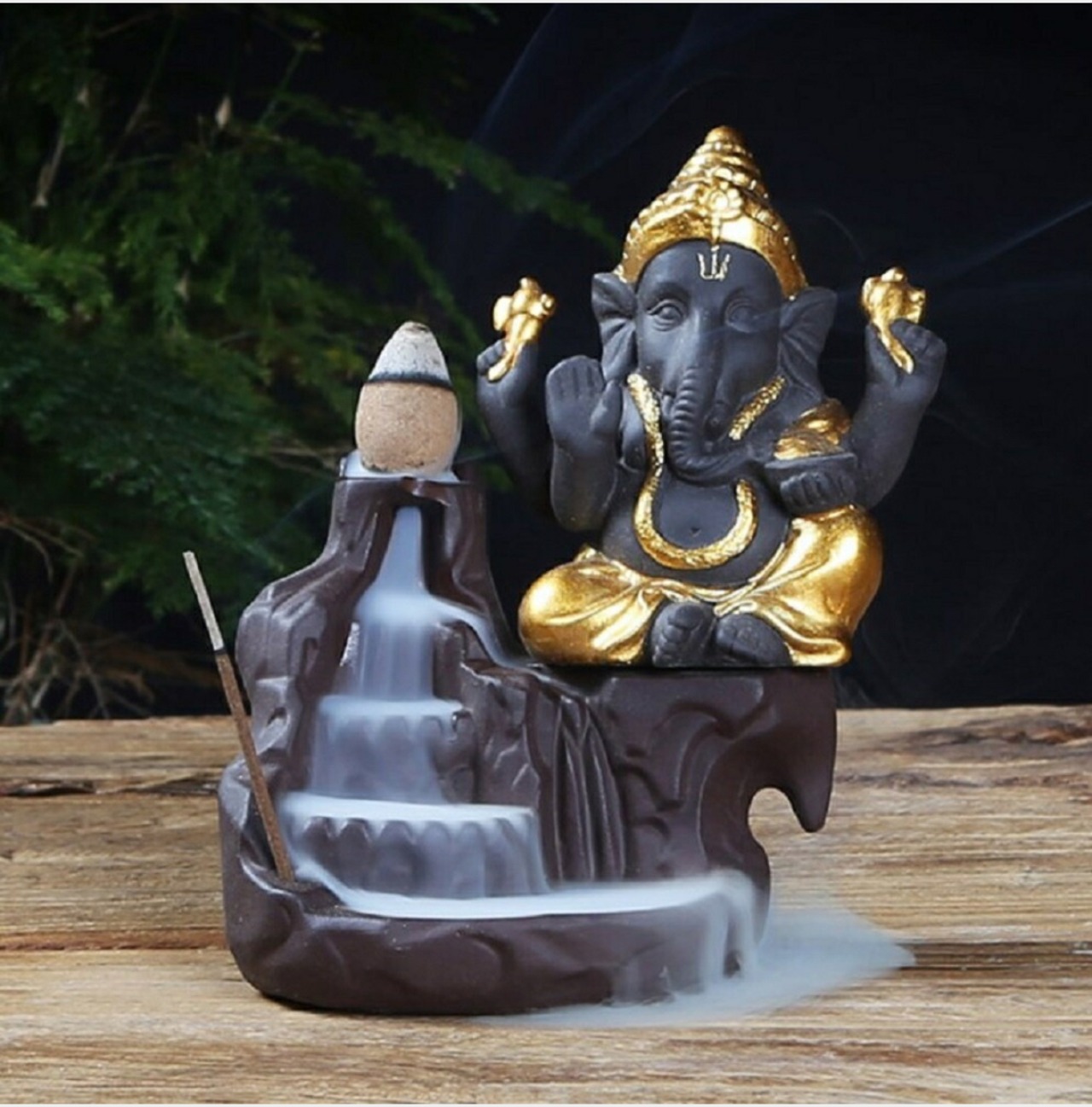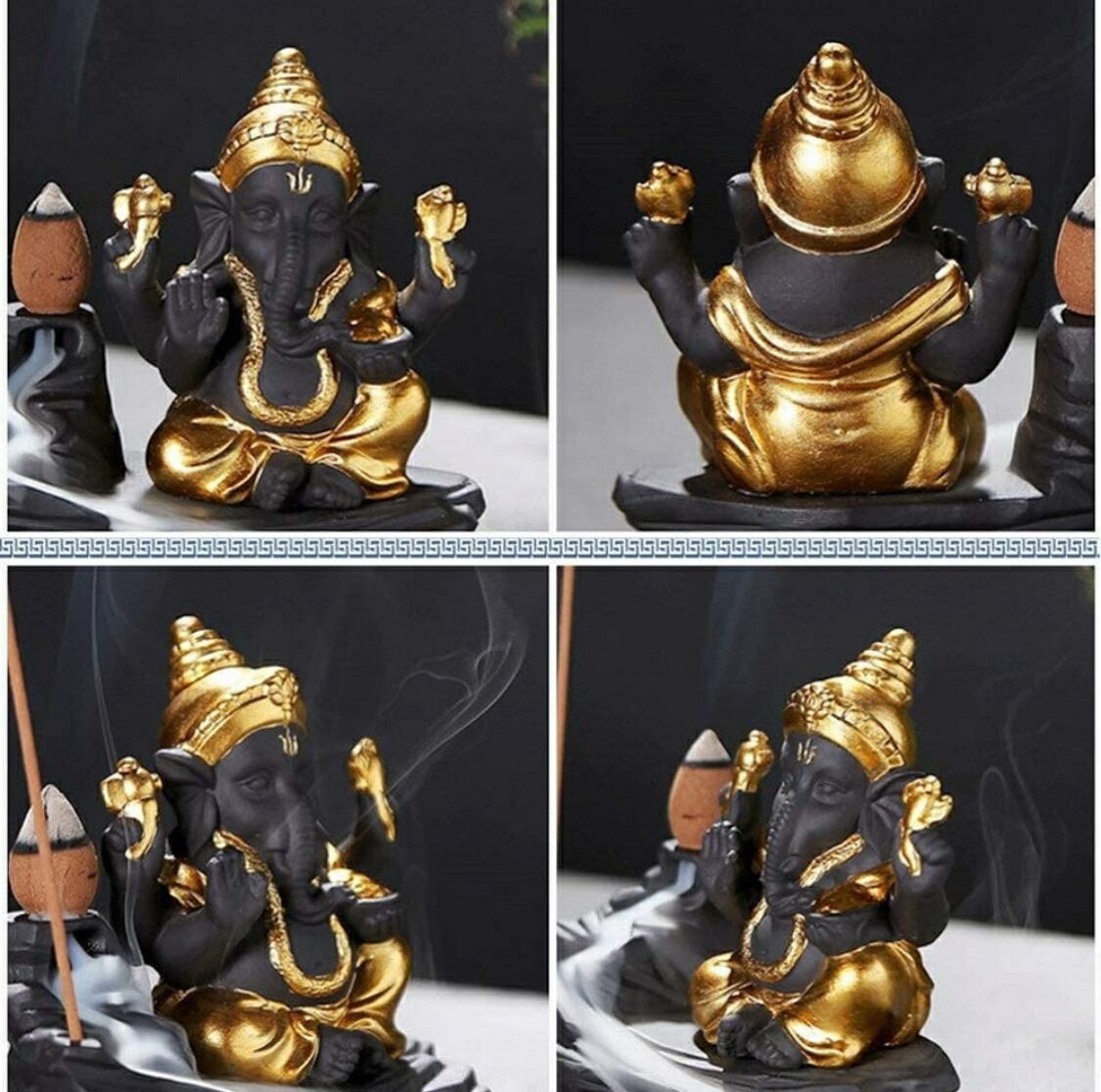 ガネーシャ ゴールド お香スタンド 倒流香 陶器 花 インテリア モダ