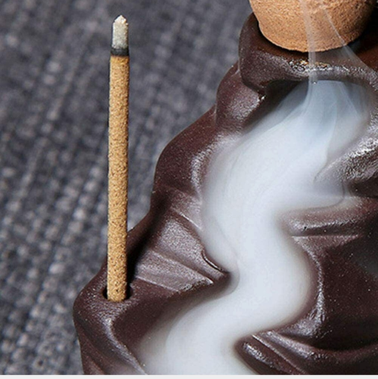 川の流れのようにゆっくりと下へ流れる煙は見ている人をしっくりと落ち着いた瞑想の世界へ誘ってくれます。ストレス解消にお役立ちできます。