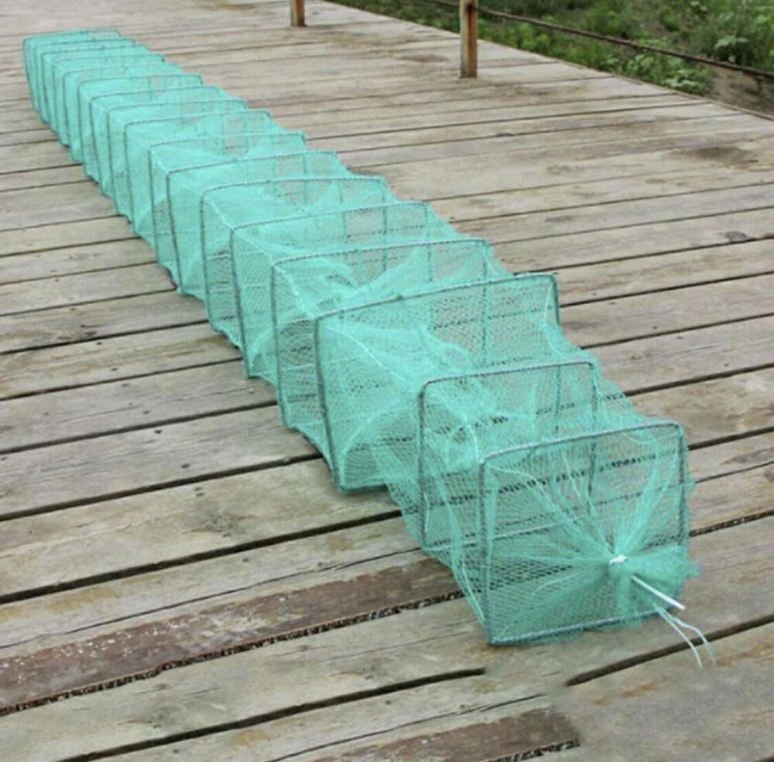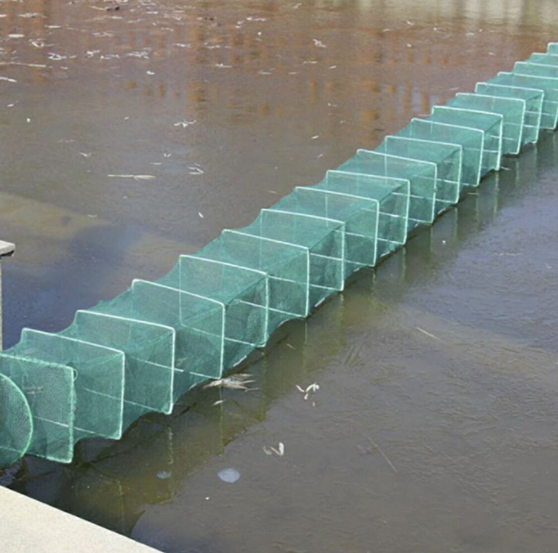 魚や蟹やザリガニは各ネットに開いている穴から侵入してきます。