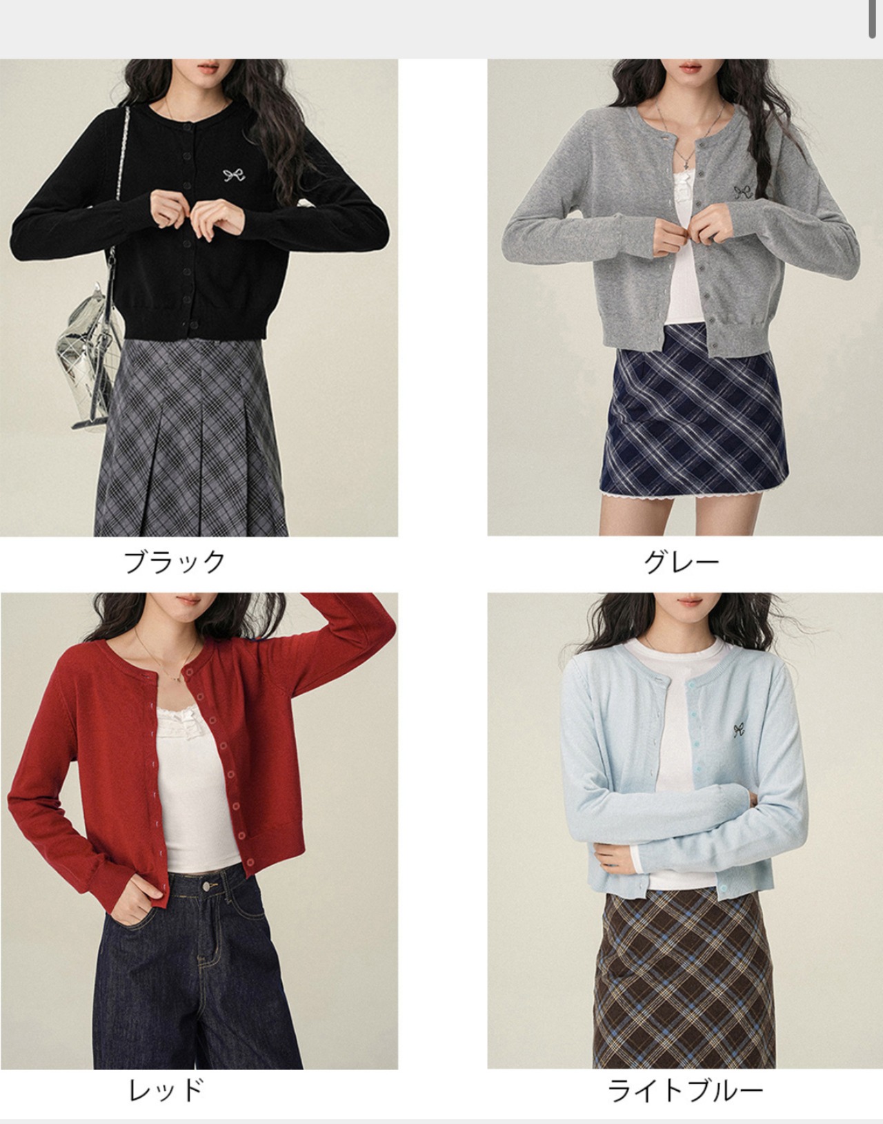 ベーシック 春秋服 着やせニット 無地 ショート丈カーデ黒