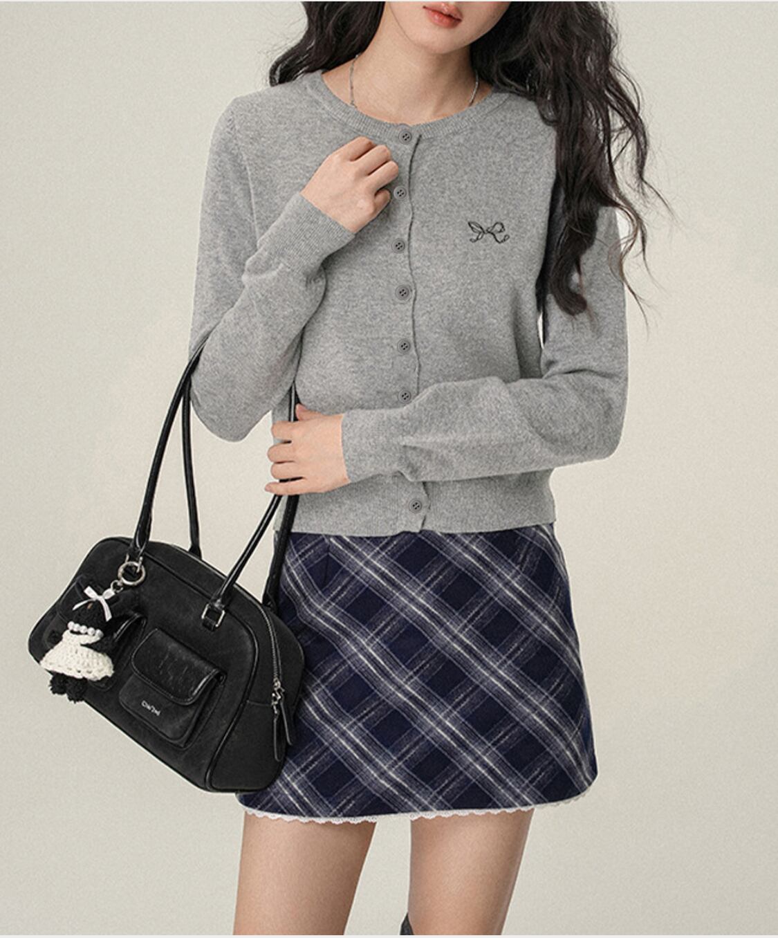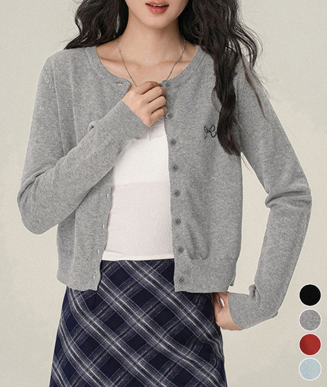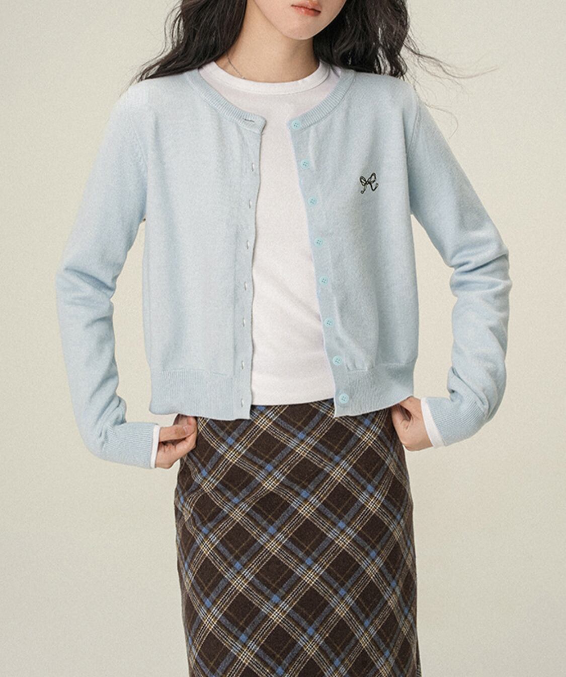 可愛らしい胸元のリボンがアクセントになったニットカーディガン。