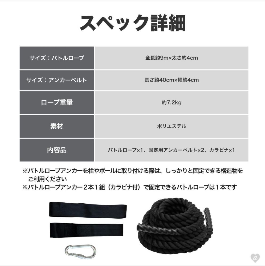バトルロープ×1、固定用アンカーベルト×2、カラビナ×1