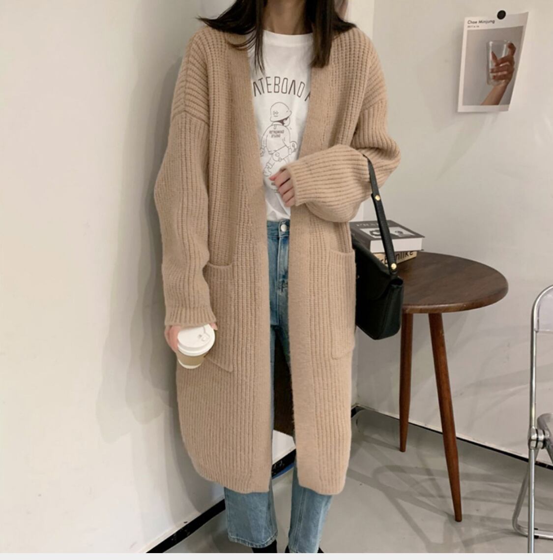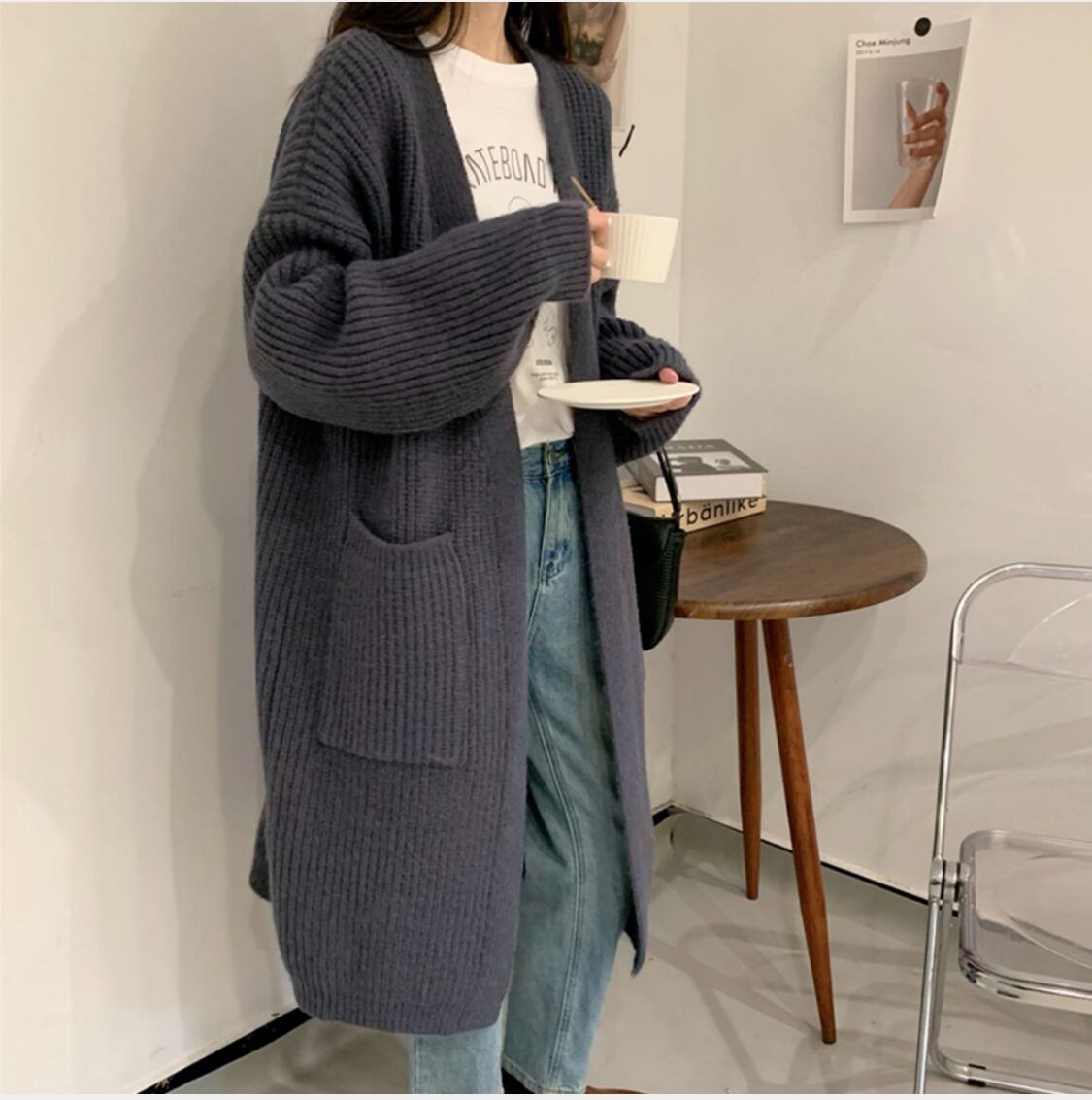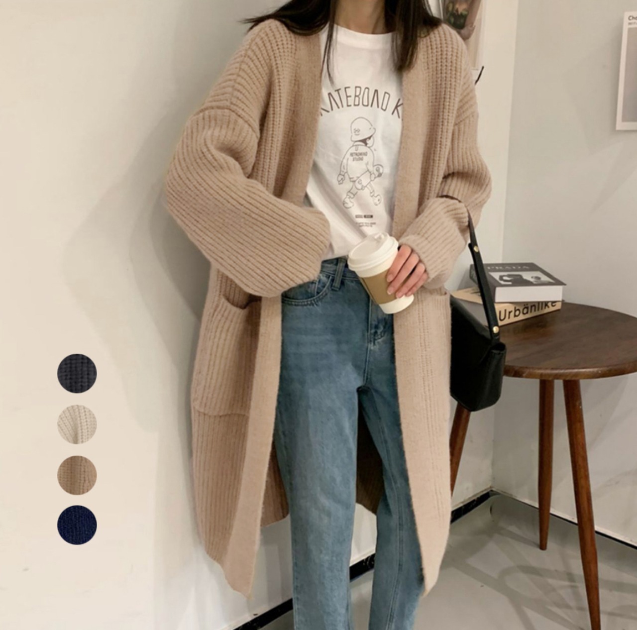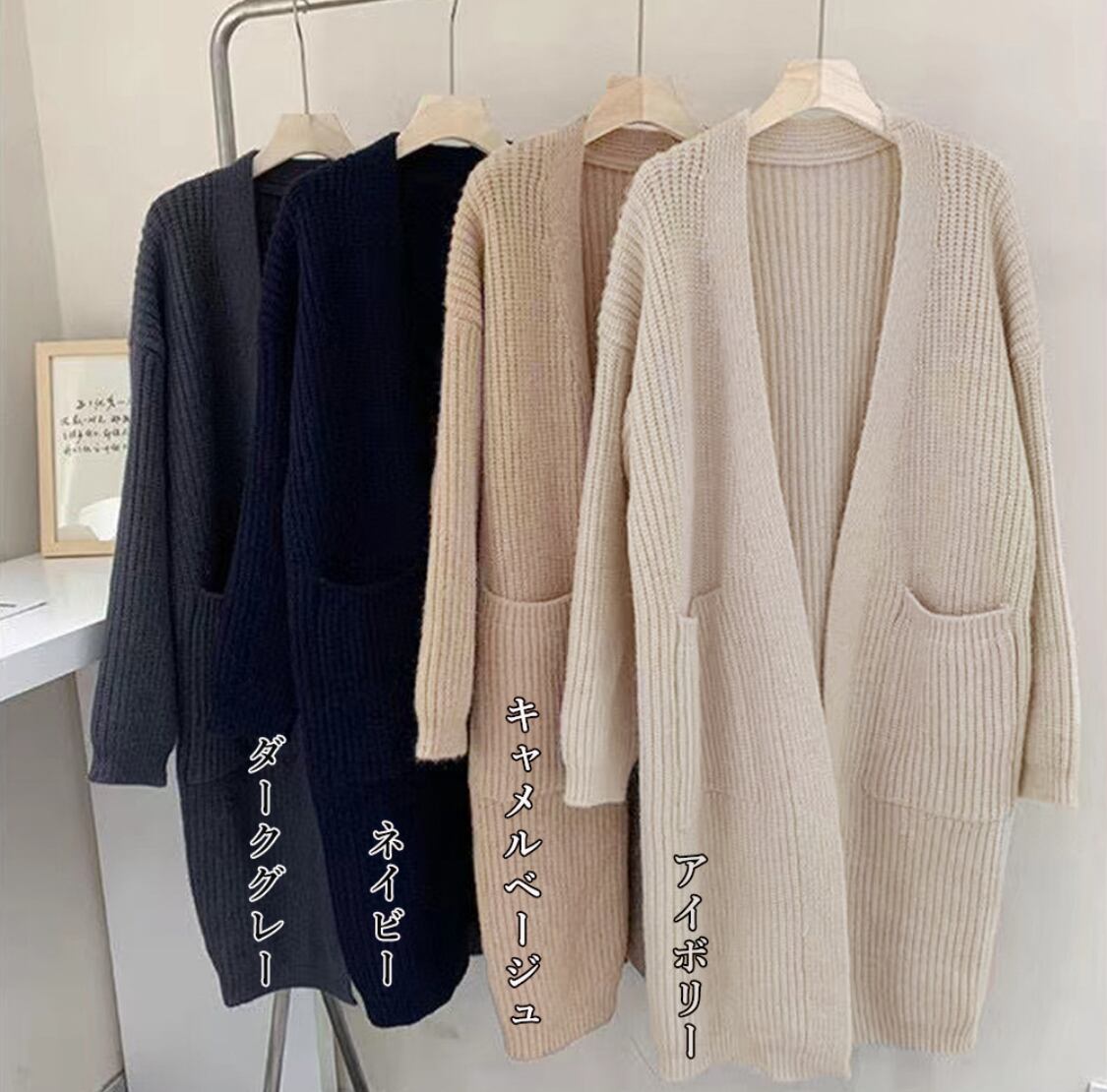 楽ちんアウター無地 厚手ニットコート 韓国風羽織り 秋冬
