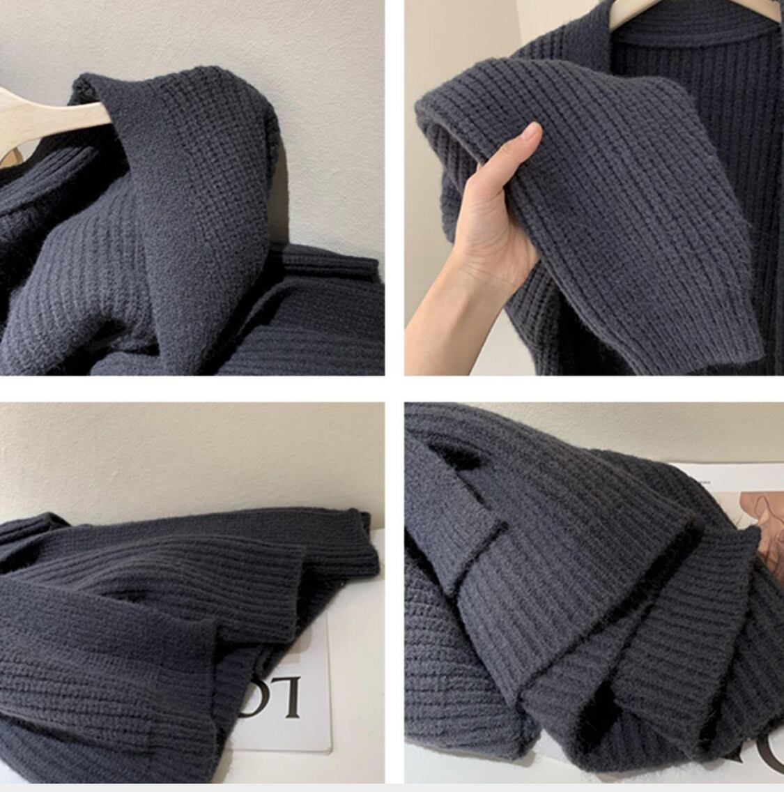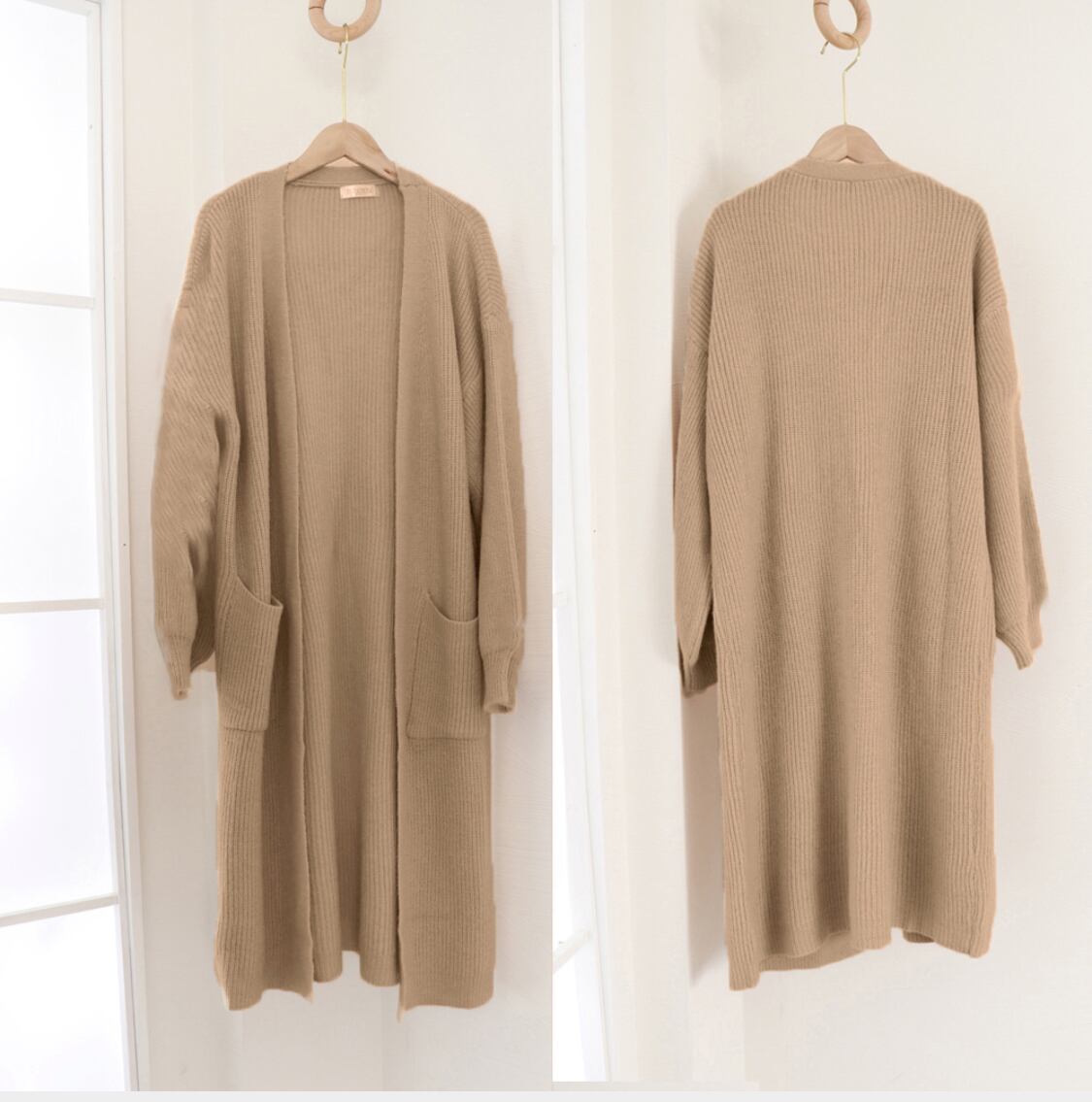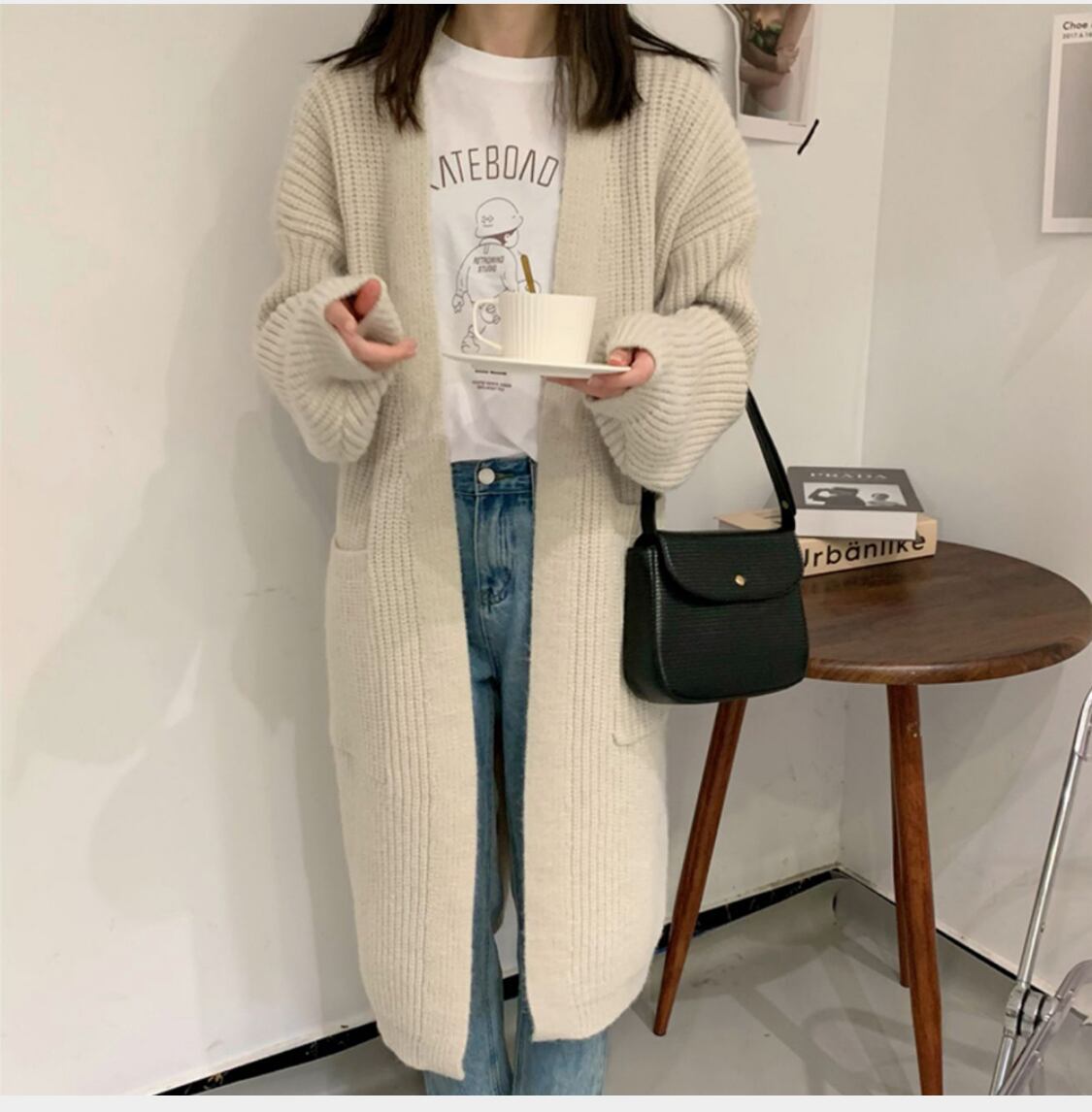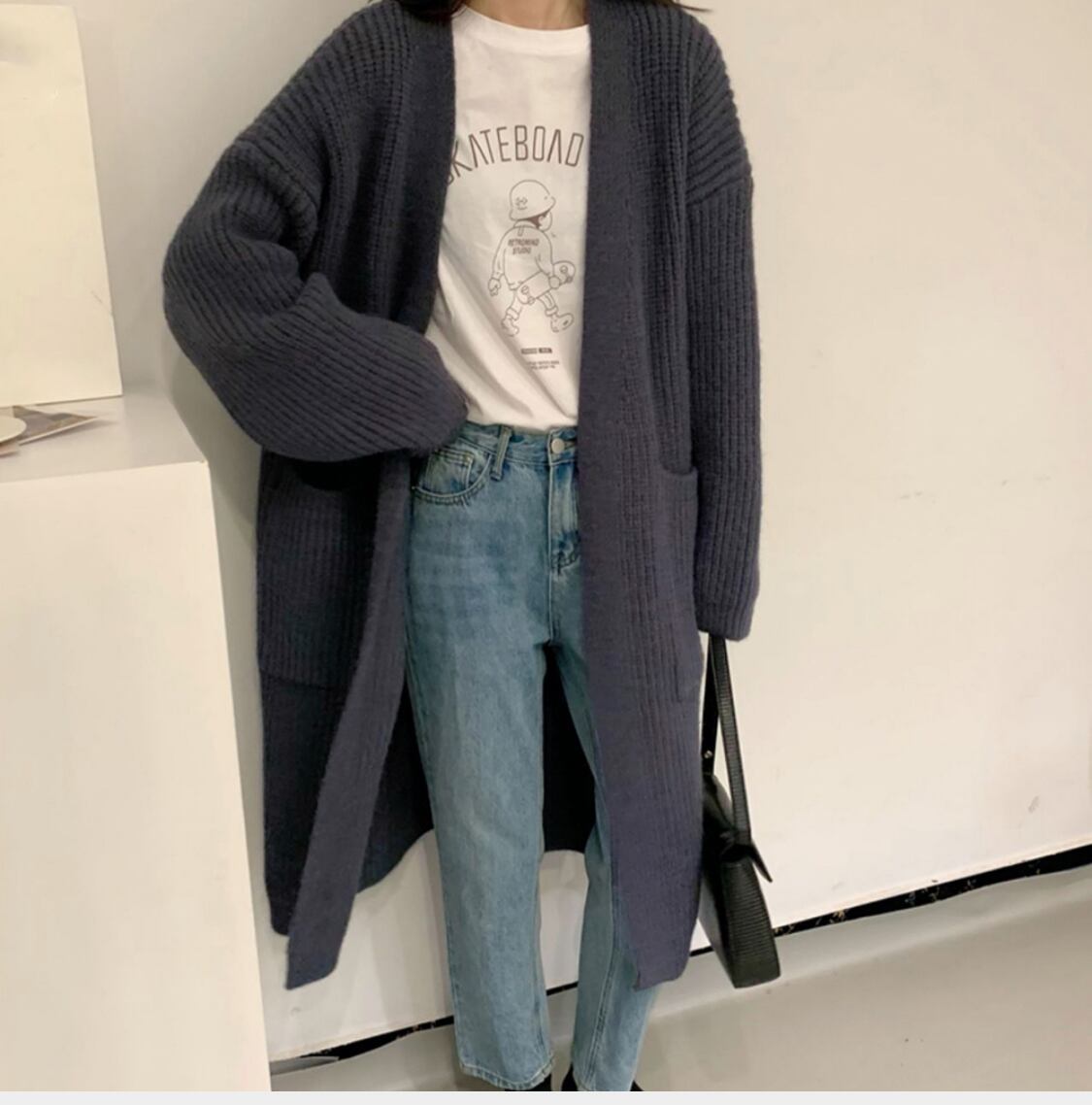 楽ちんアウター無地 厚手ニットコート 韓国風羽織り 秋冬
