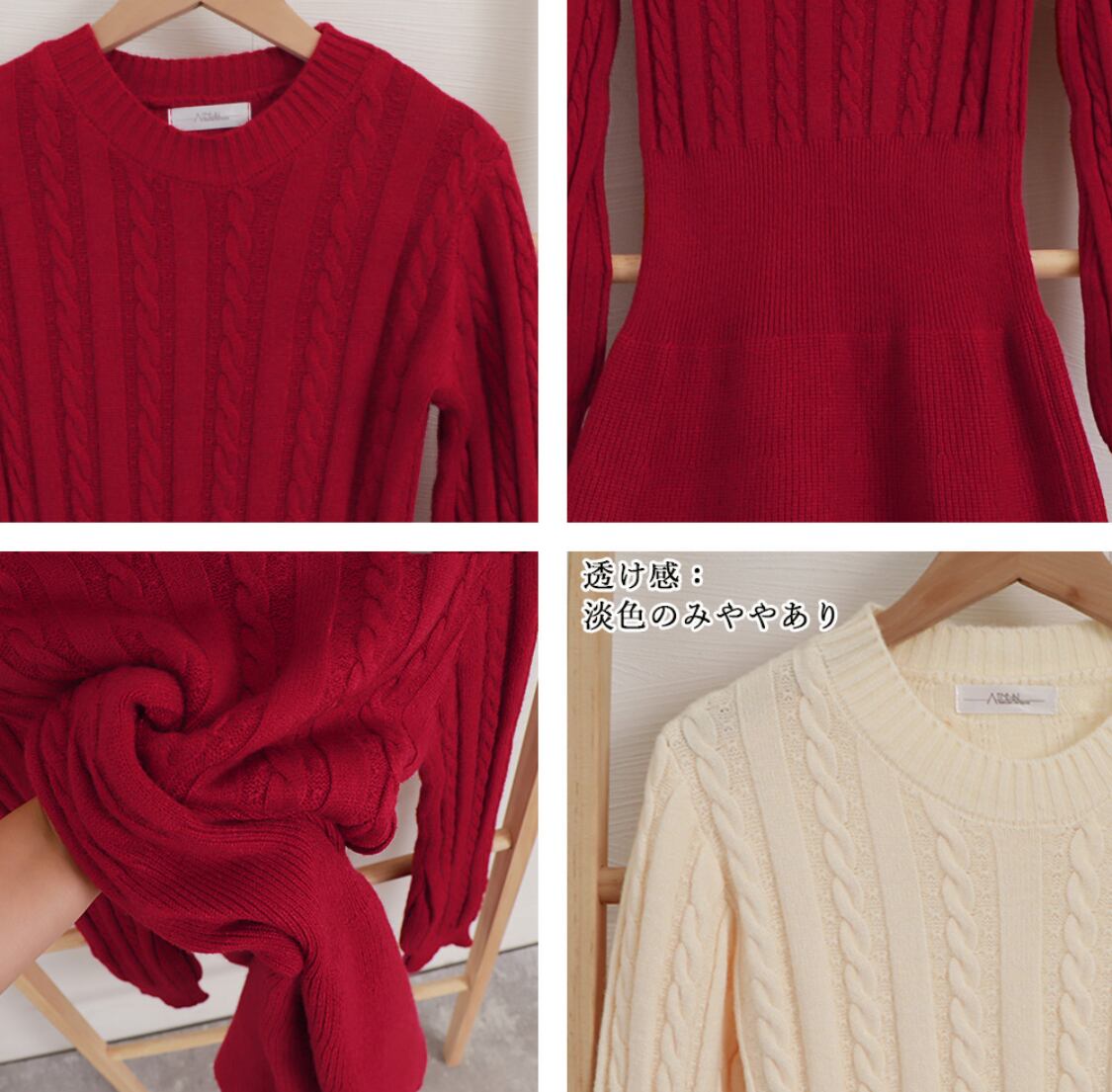 ※ニット素材の為、伸縮具合によっては編みに隙間を感じる場合があります
