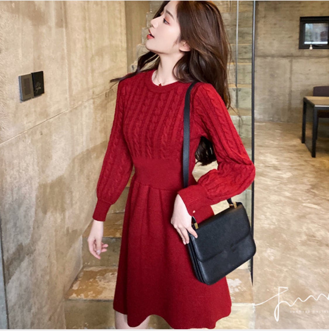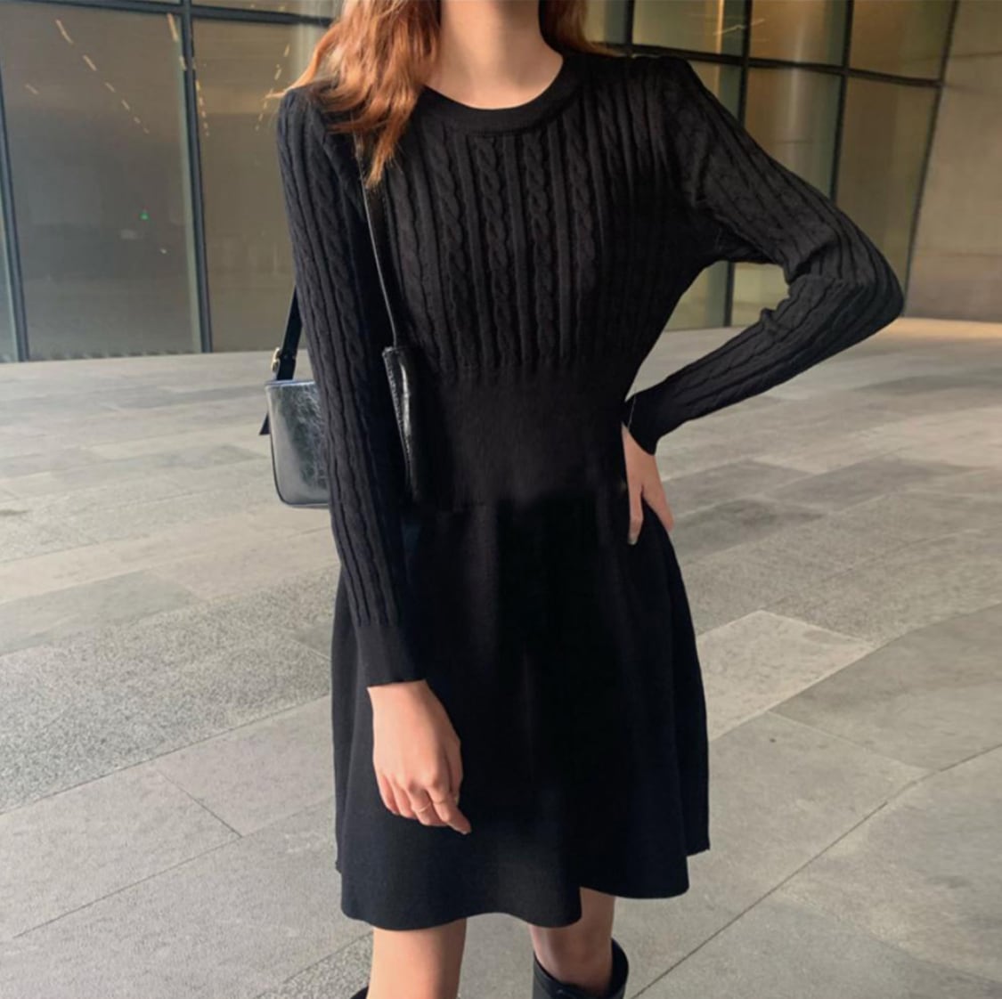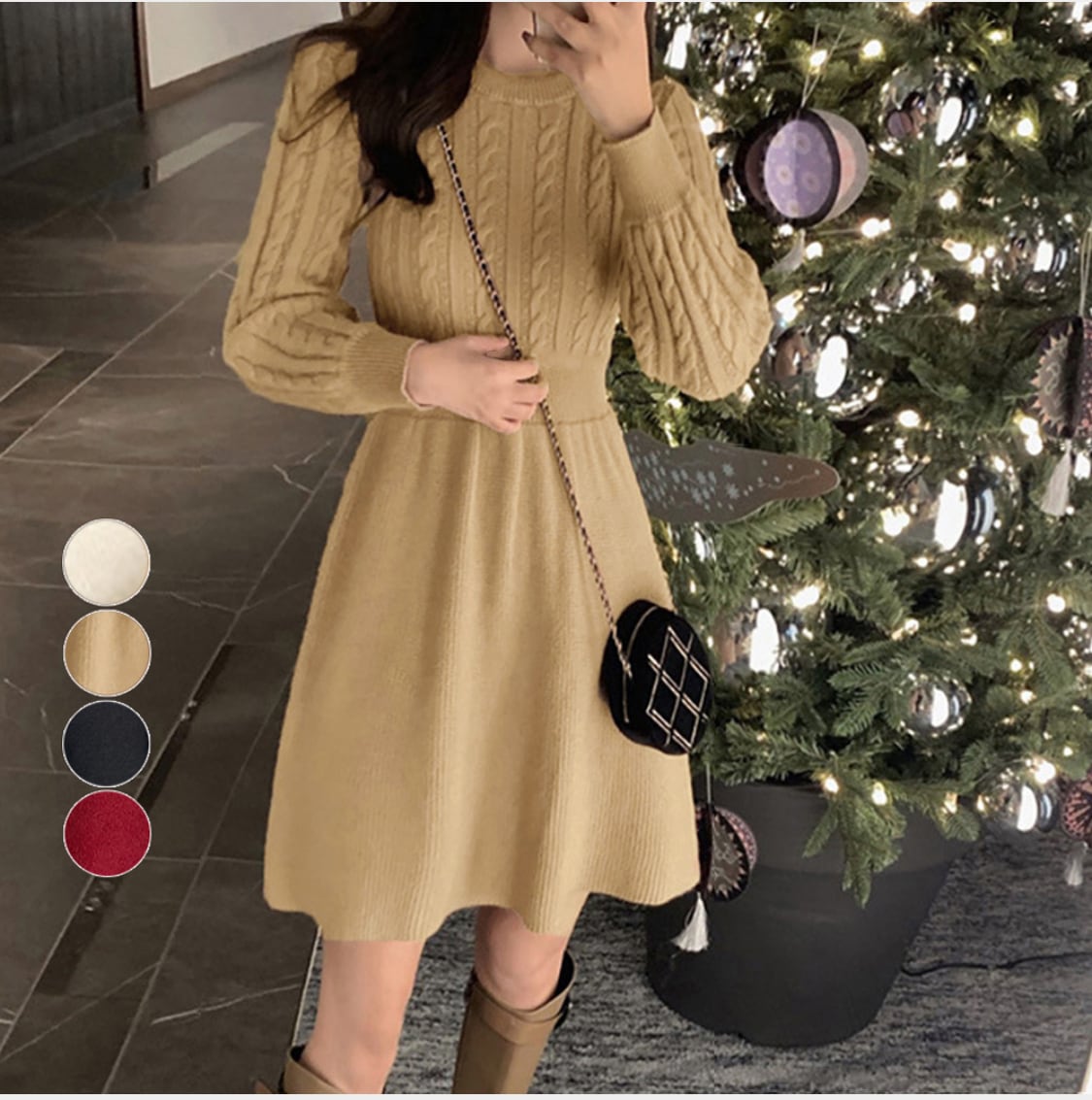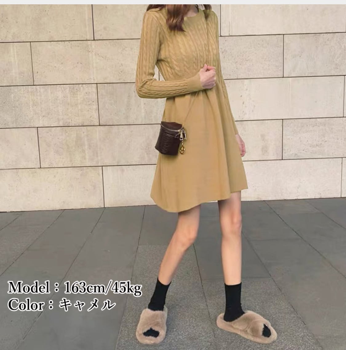 ケーブル編みニットミニワンピース 韓国風