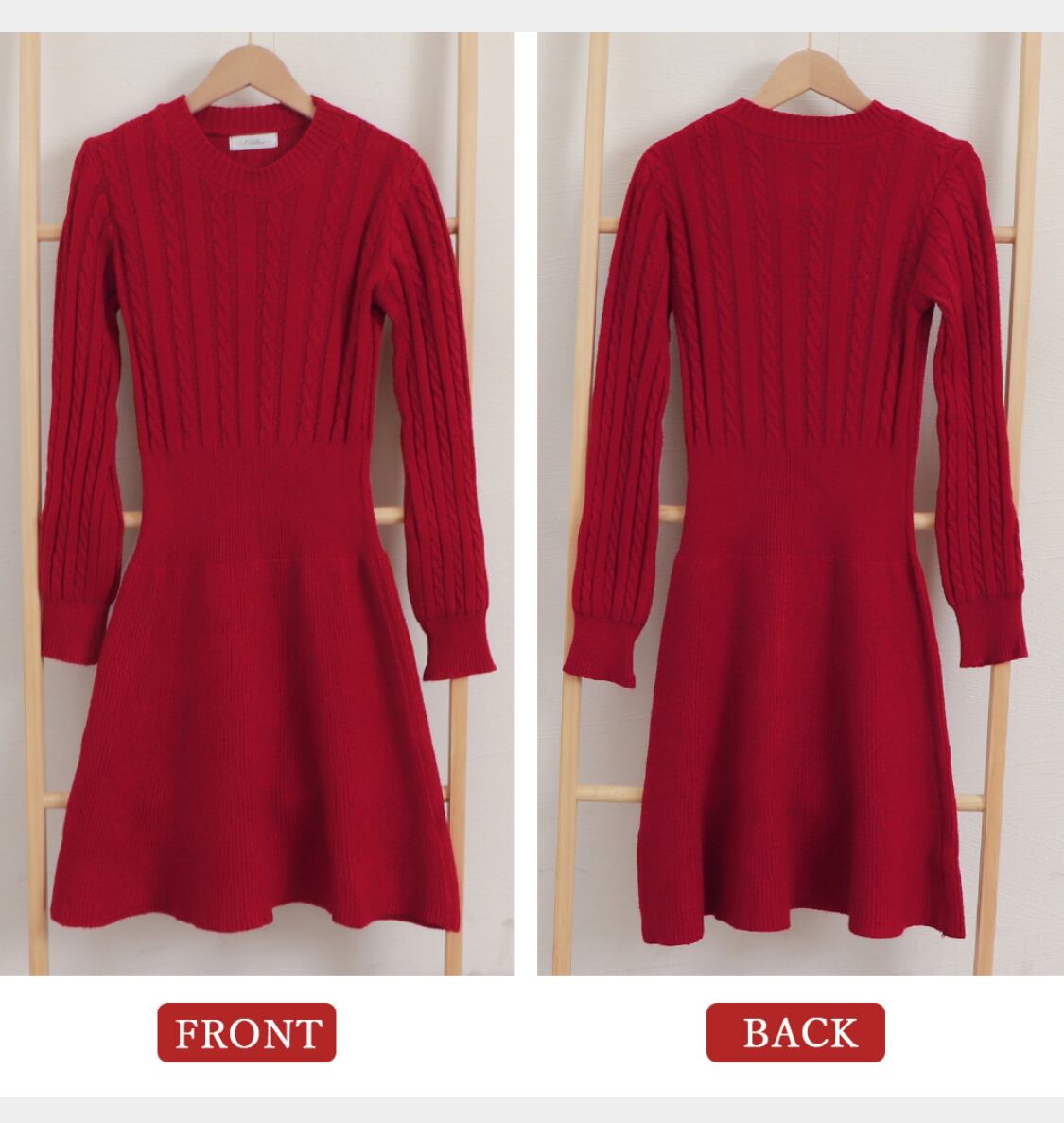 ケーブル編みがアクセントに映えるニットワンピース