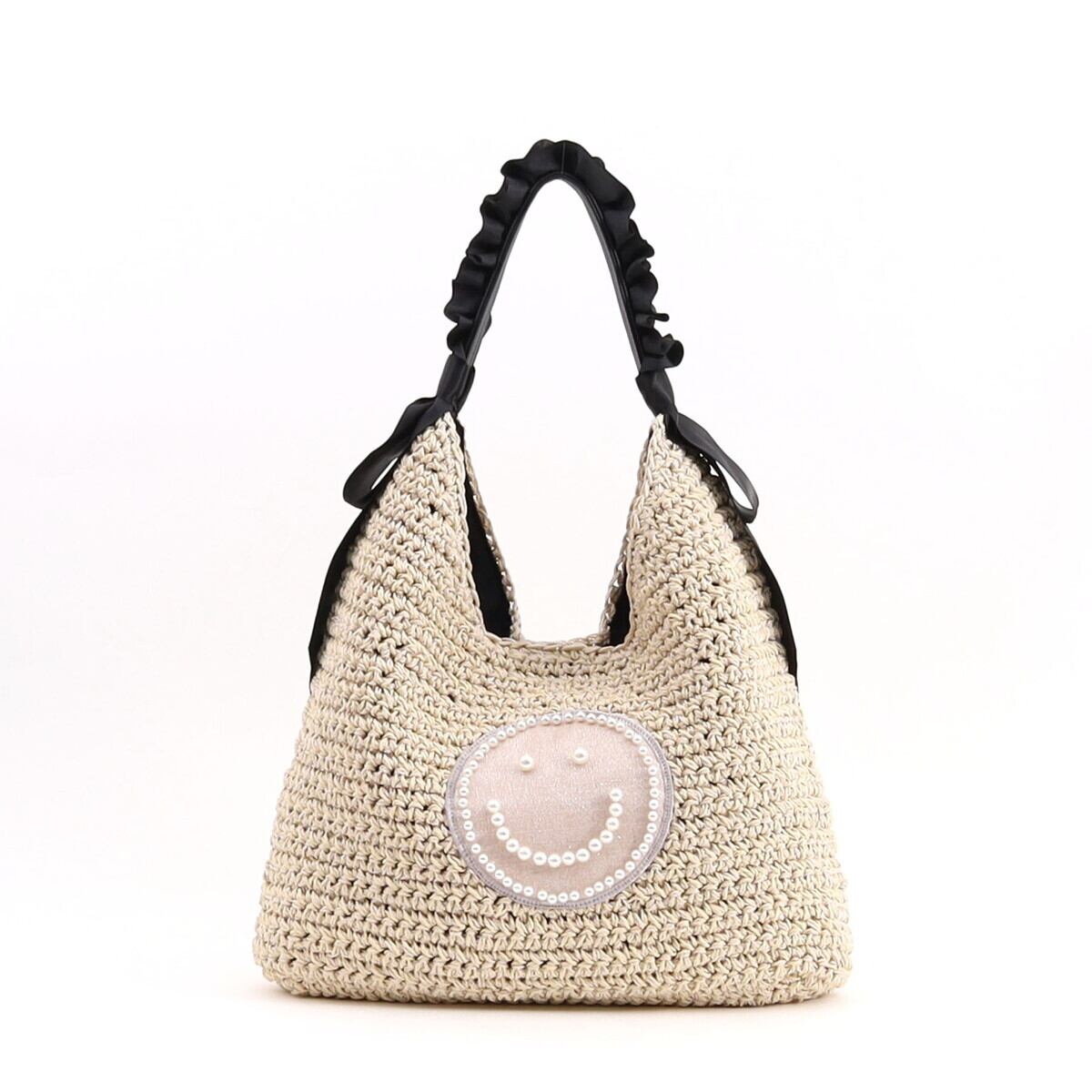 2026新作【COOCO】SMILEY フリルハンドルxパール刺繍ワンショルダーバッグ サマーバッグ