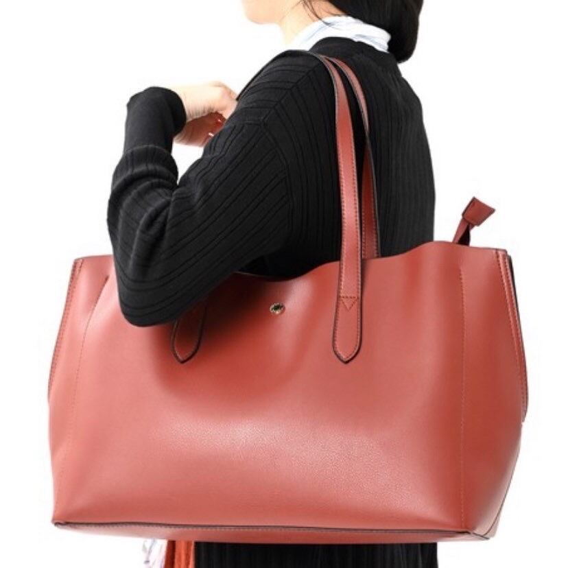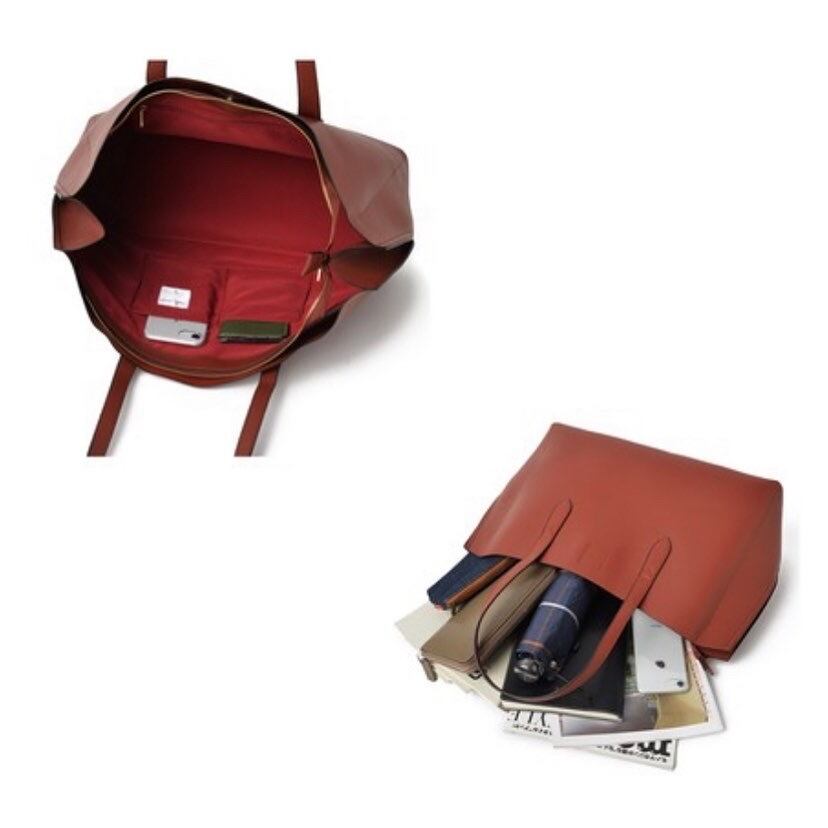 本体だけで重たさを感じるアイテムが多いトート。500mlペットボトル飲料よりも軽い約480gを実現したトートバッグは、ぜひ出勤用のバッグとしてご使用いただきたいアイテム。あおり型の開口部も書類などの分別にご使用いただけます。