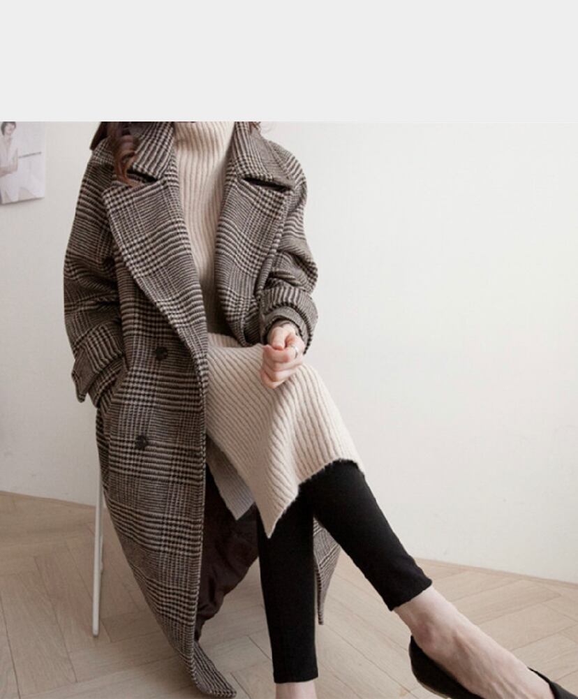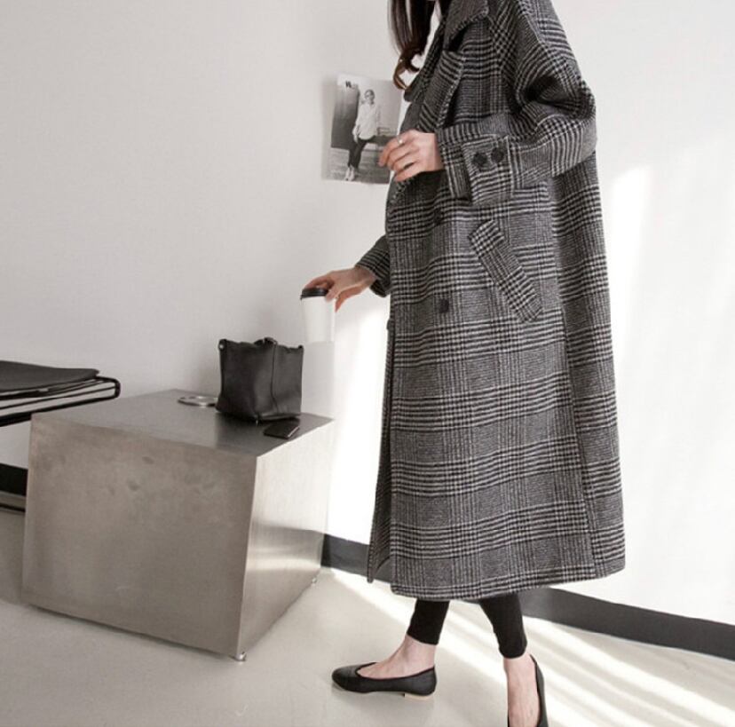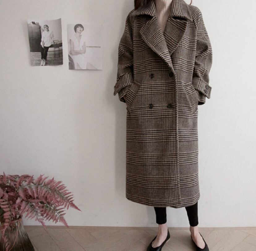 韓国ファッション中・長セクション チェック柄トレンチコート大きいサイズ 暖かい コート