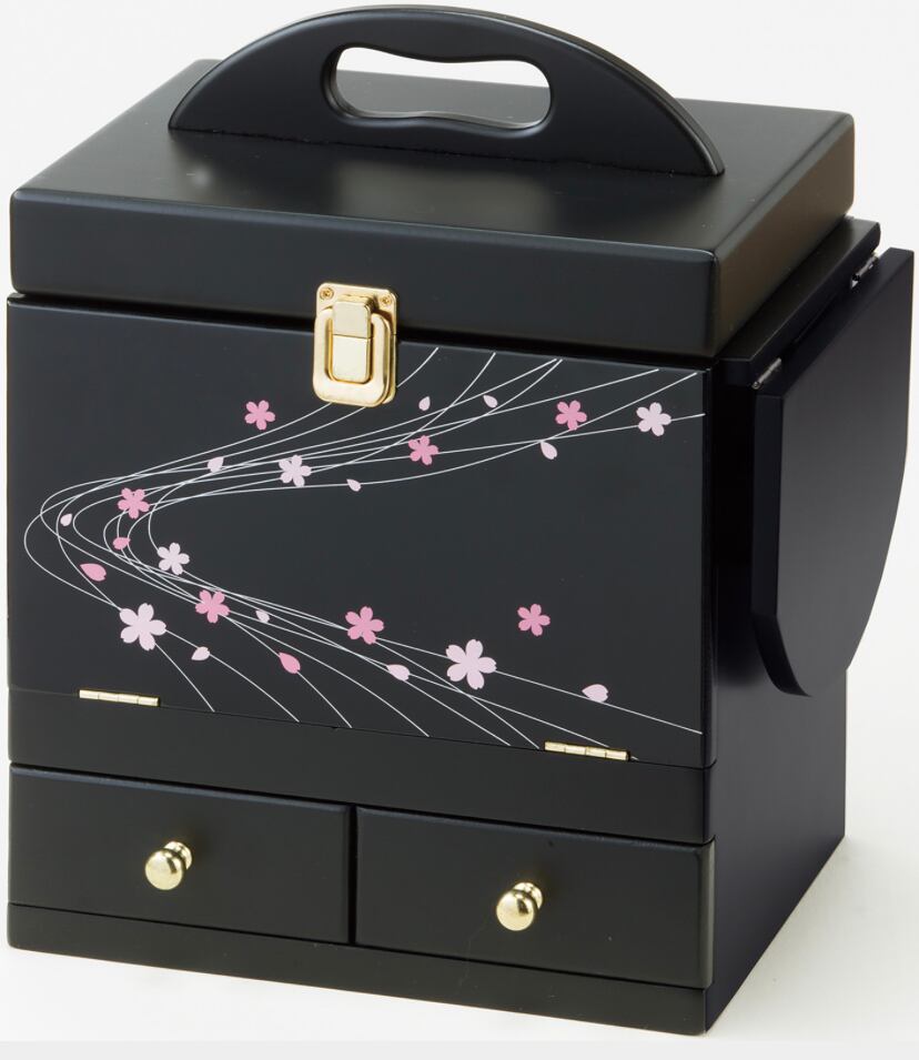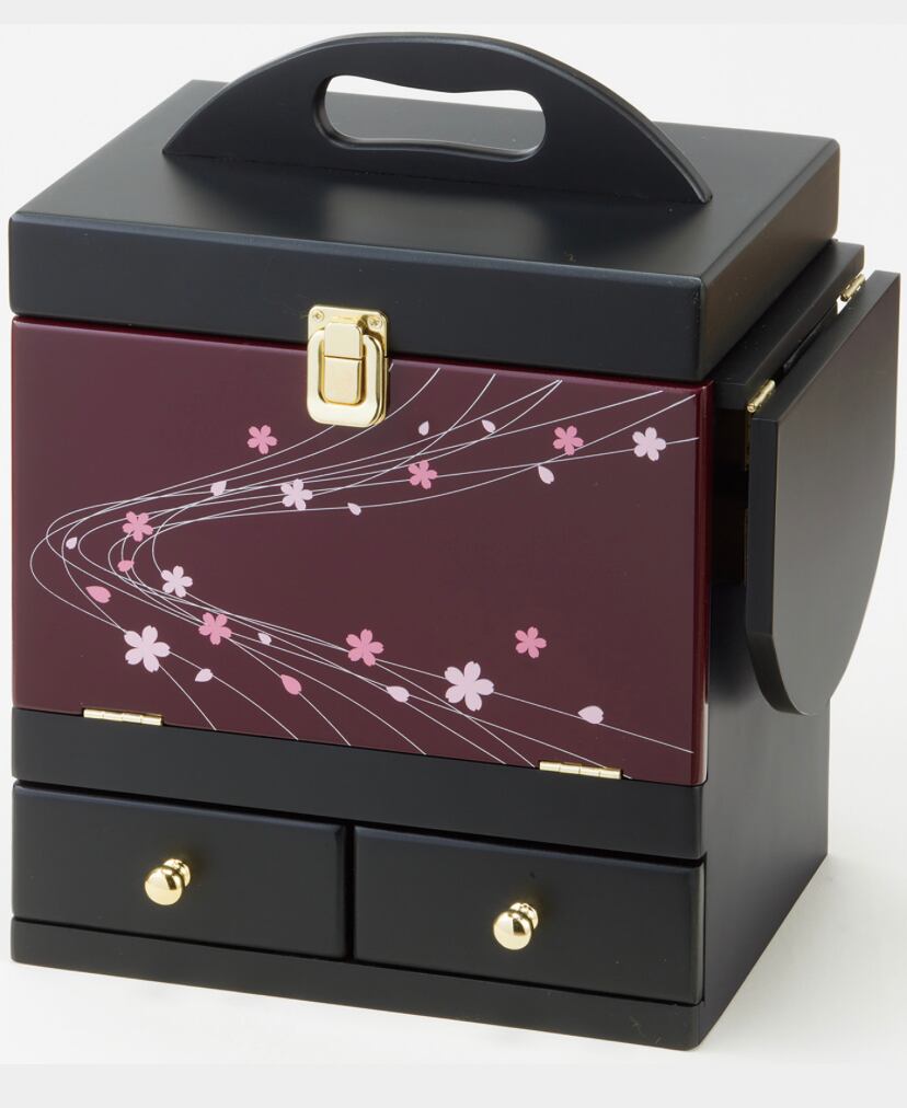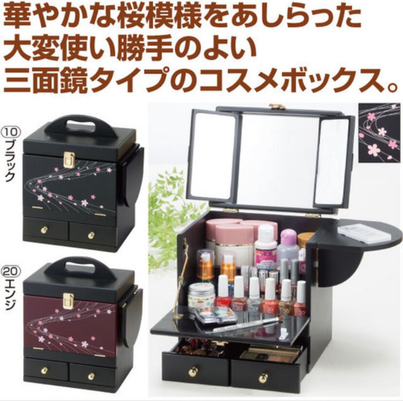 華やかな桜模様をあしらった大変使い勝手のよい三面鏡タイプのコスメボックス。
