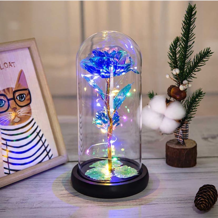 夜眠る前に優しい薔薇の光りの部屋の中で読書をしたり、薔薇の部屋の中でゆっくり温かい飲み物を飲み一日を振り返るのも大人なお洒落って感じで素敵な過ごし方ですねガラスドームの中のLEDライトとともに薔薇が光り幻想的な眺めが楽しめます。綺麗にライトアップされるので個性的でかわいいインテリアを作り上げます
