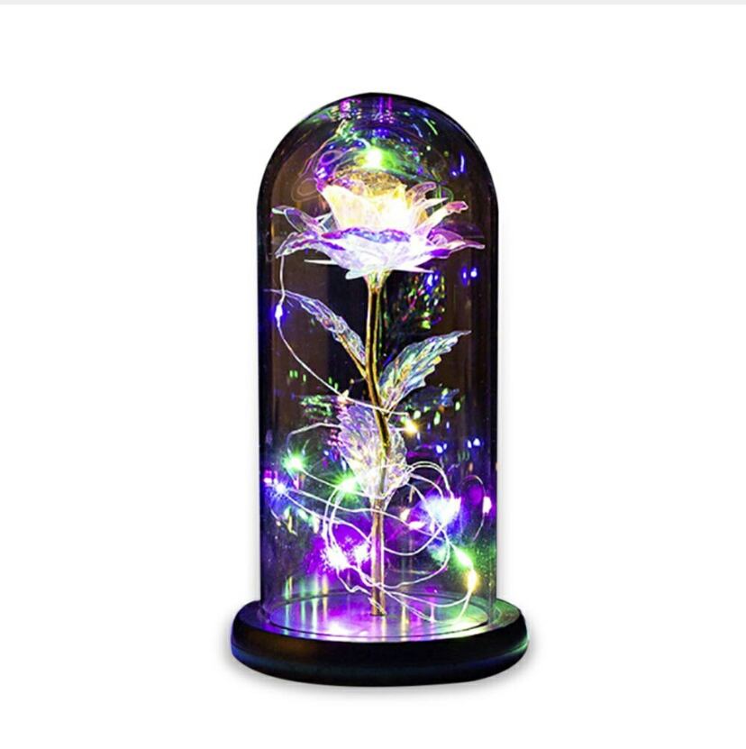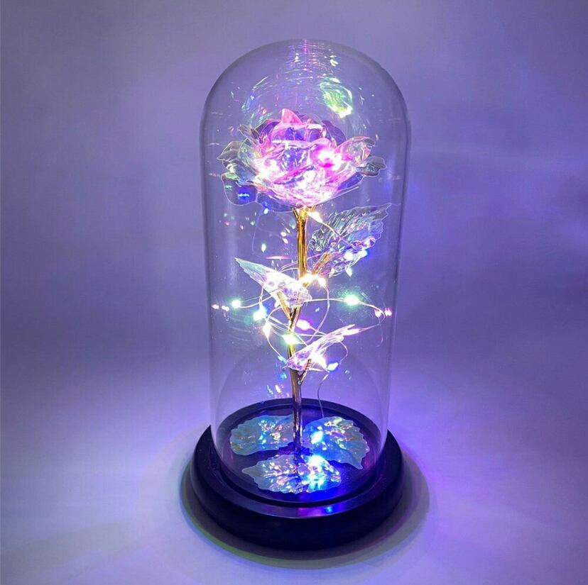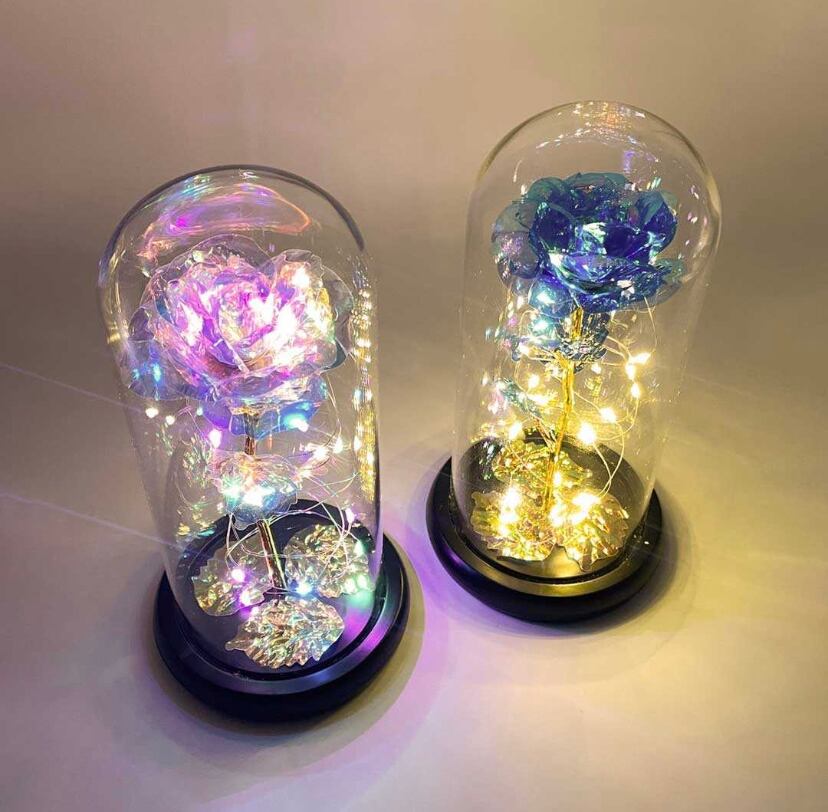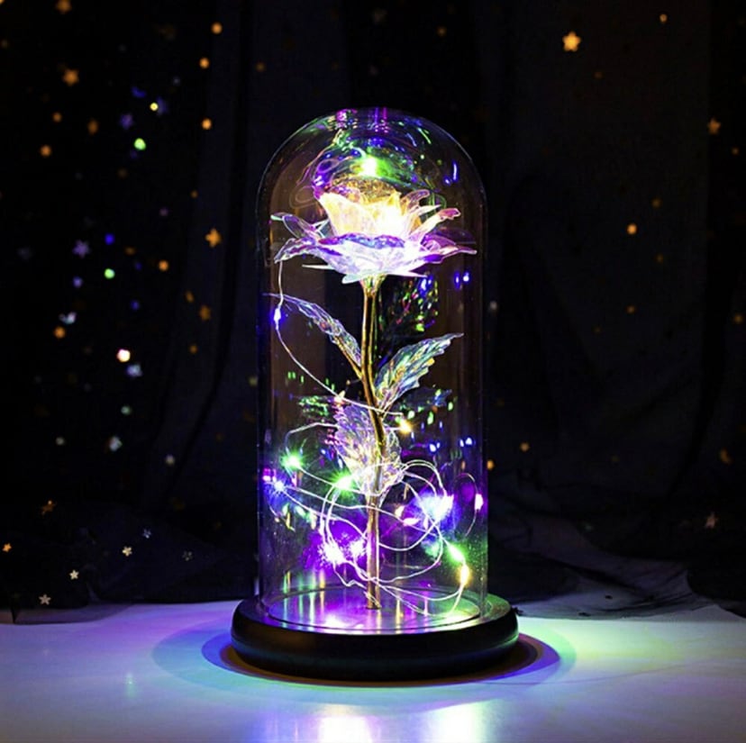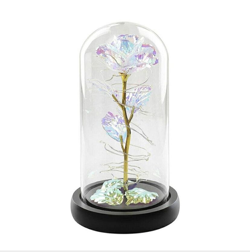 透き通るギャラクシーカラーの薔薇のLEDガラスドームです。いつまでも眺めていたくなる、まるで絵画のような輝き