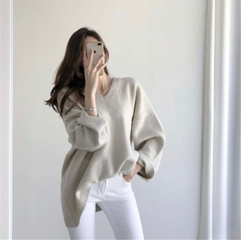 #韓国ファッション #Vネック #ゆったりするニット #セーター #カジュアル