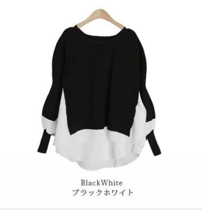 大人旬Style!!通勤する 2021新品パフスリーブ セーター フェイク2ピース 中・長セクション 厚い怠惰な風