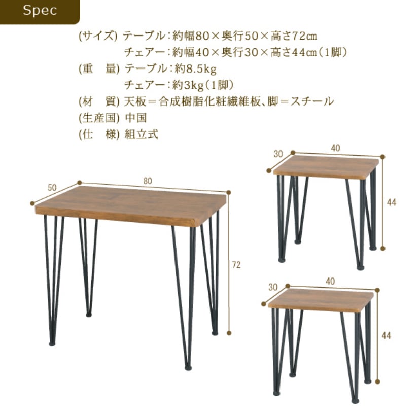 木目調とスチールのスタイリッシュな組み合わせ!コンパクトなダイニング3点セットです
