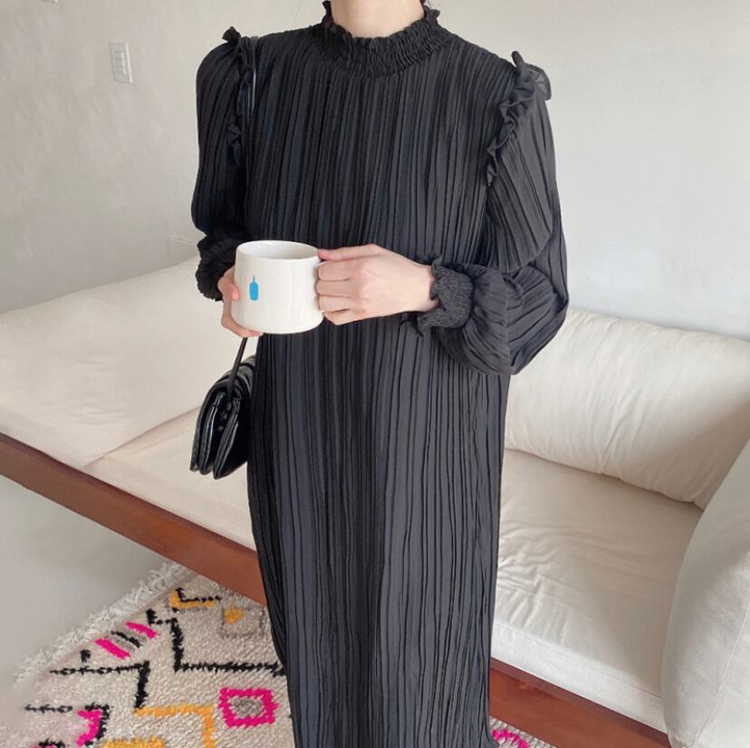 ワンピース レディース ロング丈ワンピース 2022年秋冬新作 長袖 ランタンスリープ