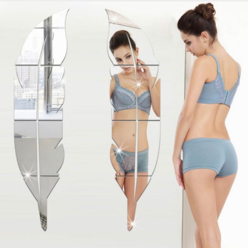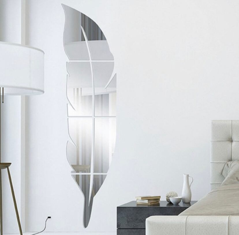 DIY 貼る特大羽根ウォールミラー(シール式) ウォールステッカー ミラー 鏡 ウォールミラー ステッカー インテリア リフォーム フェザー 模様替え 姿見 割れにくい鏡 鏡効果 インテリア 壁掛けミラー おしゃれ 女優ミラー