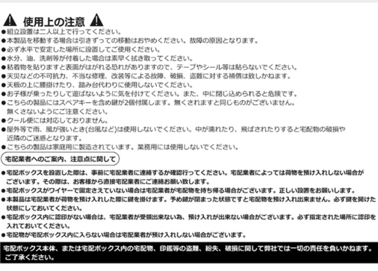 配達業者向けの案内用紙も付属し使いやすい仕様になっています