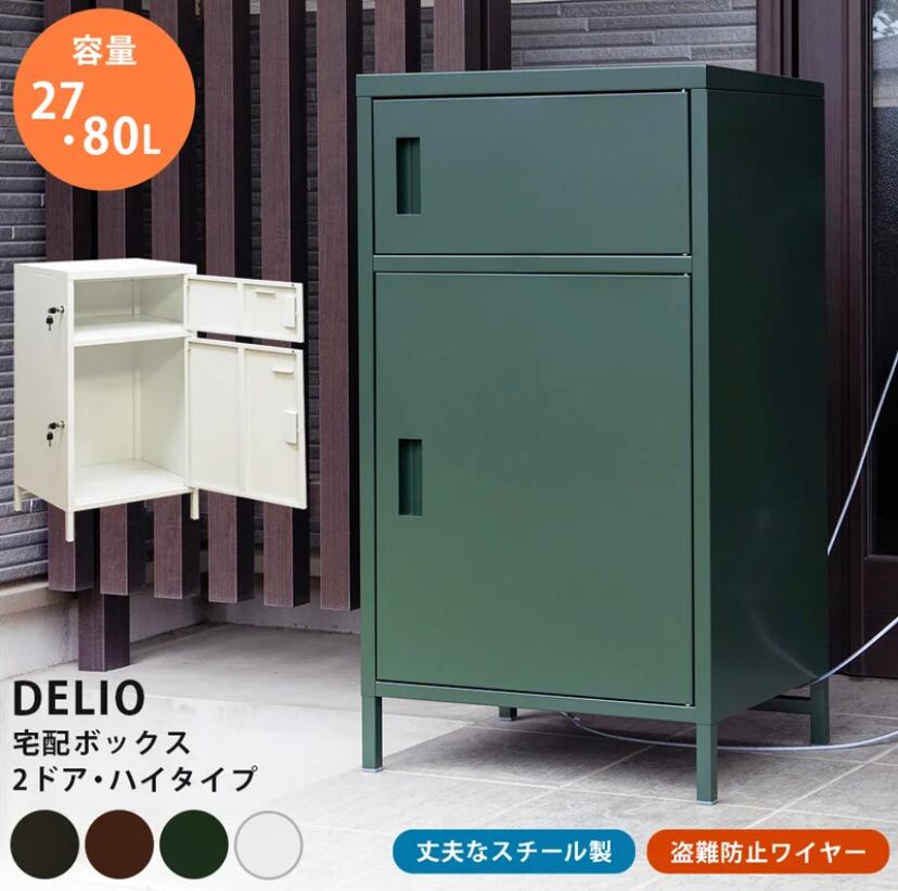 #DELIO #宅配ボックス2ドア #ハイタイプ #BK/BR/GN/WH
