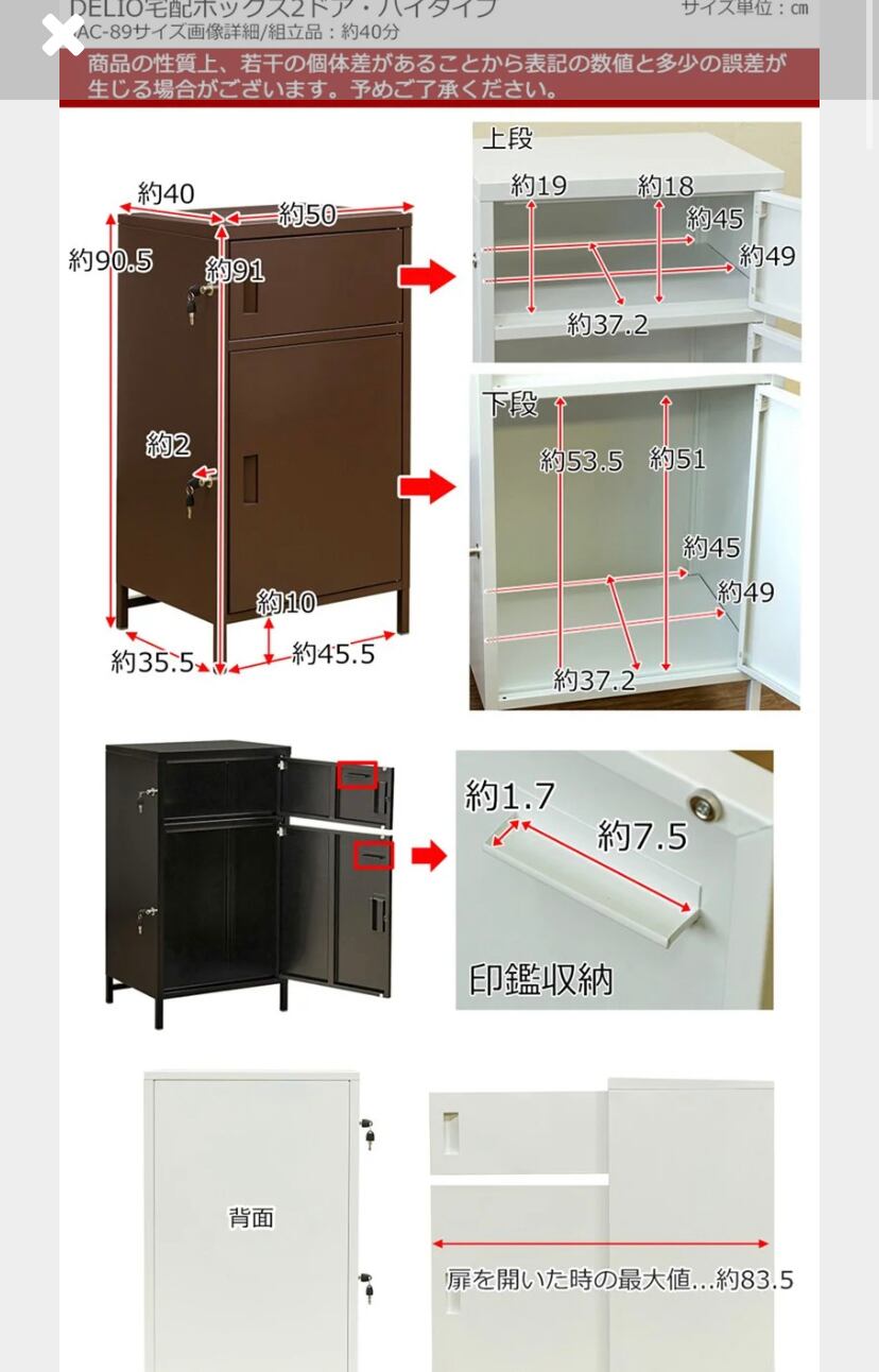 ネット通販などの配達物を不在時でも2個受け取ることが出来る2ドアタイプです