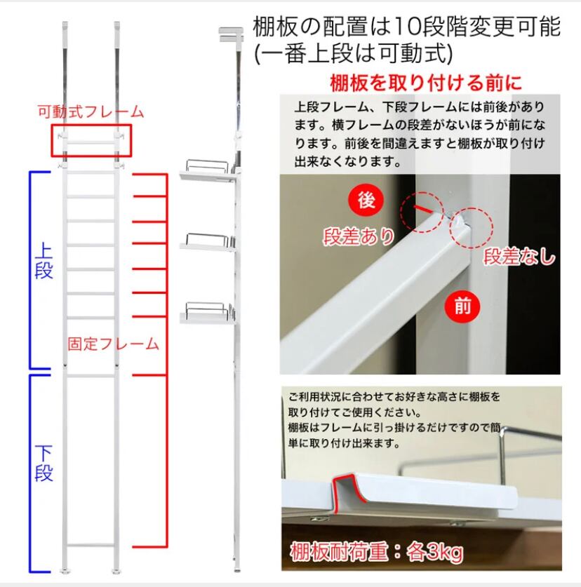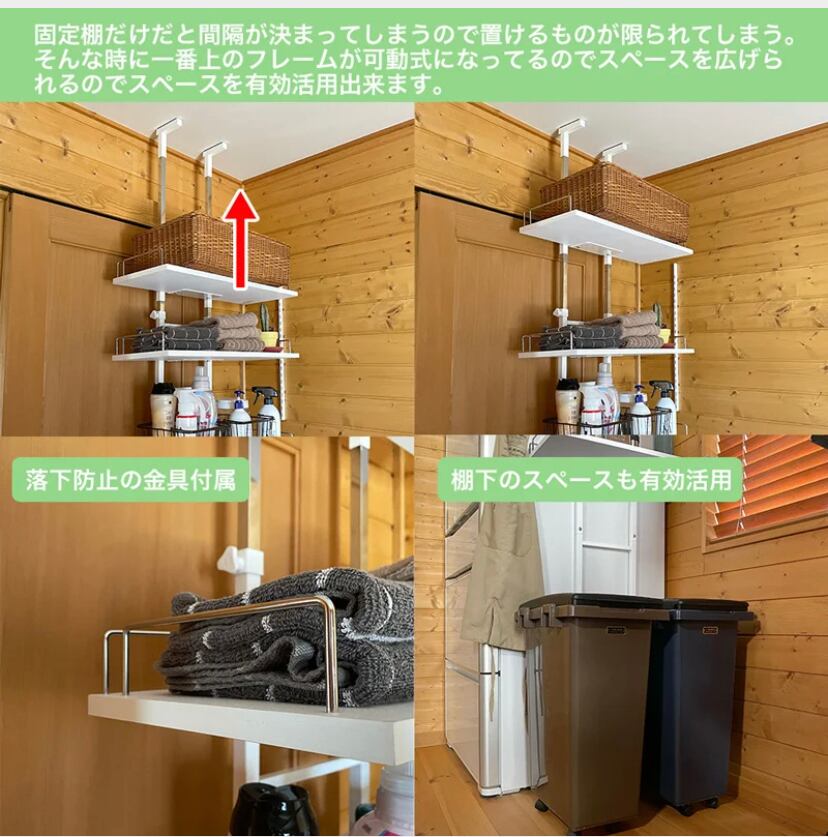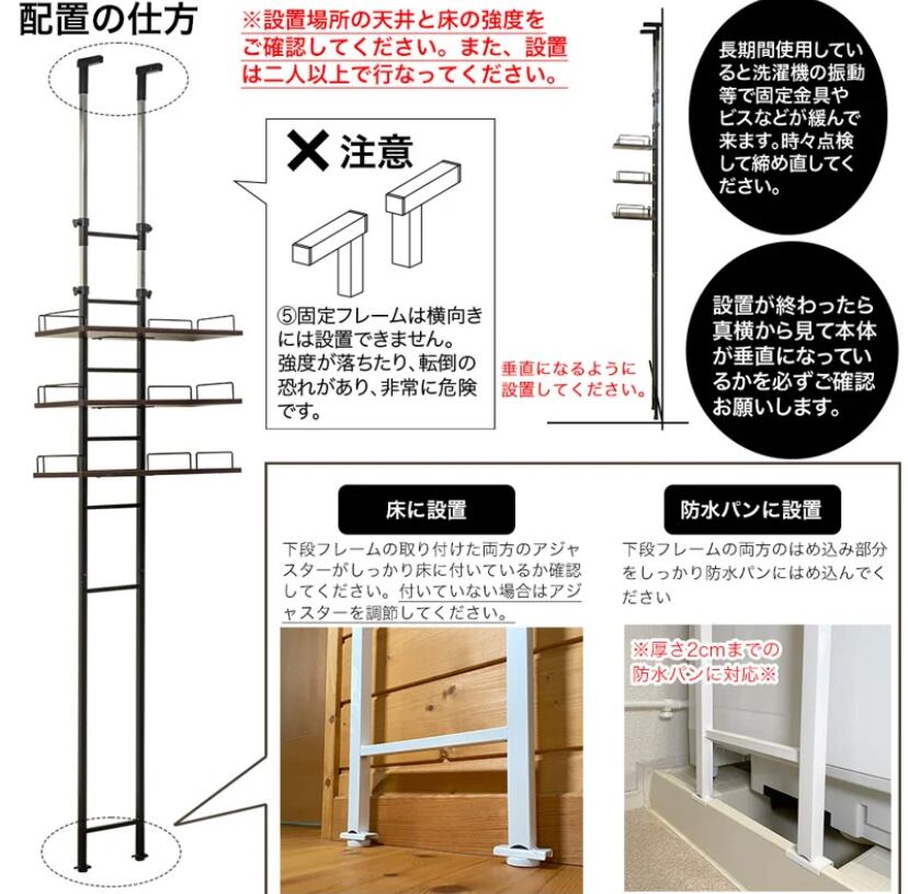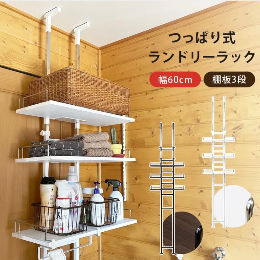 洗濯機の上のデッドスペースを有効活用出来る、つっぱり式のラックです