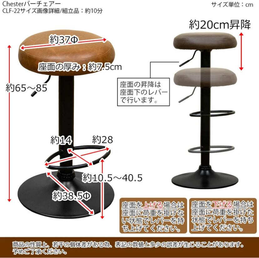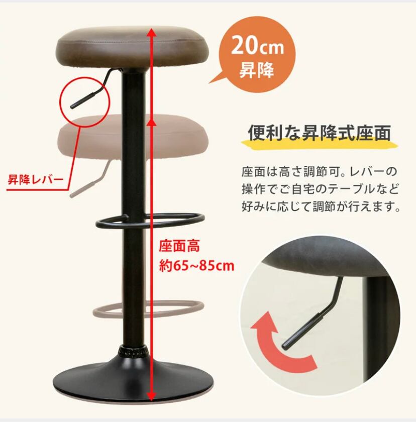 落ち着いたヴィンテージ風の座面が特徴のバーチェアです