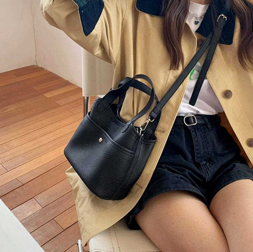 ミニバケツバッグ レディース ハンドバッグ 可愛いレザーバッグ 斜めかけ ポーチ付きカバン 2way小さめ 手提げ鞄