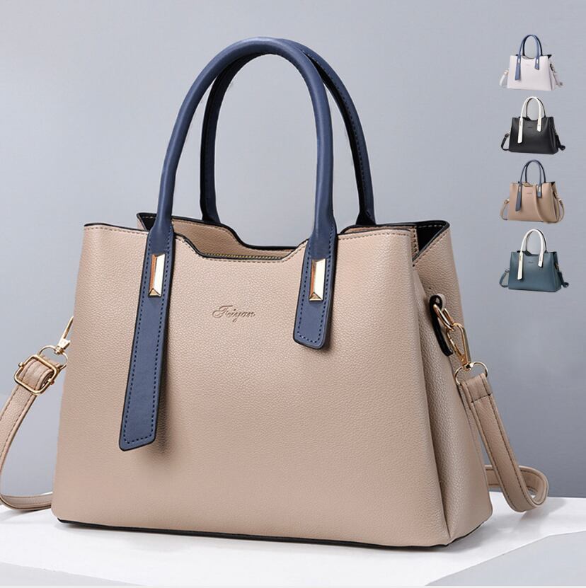 バイカラー 3way 斜めがけバッグ 大容量 ハンドバッグ 大人女子 PUレザーかばん オフィスカジュアル 肩掛けかばん