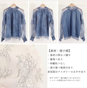 上品 きれいめ春服 フラワーブラウス柄 シースルーチュール
