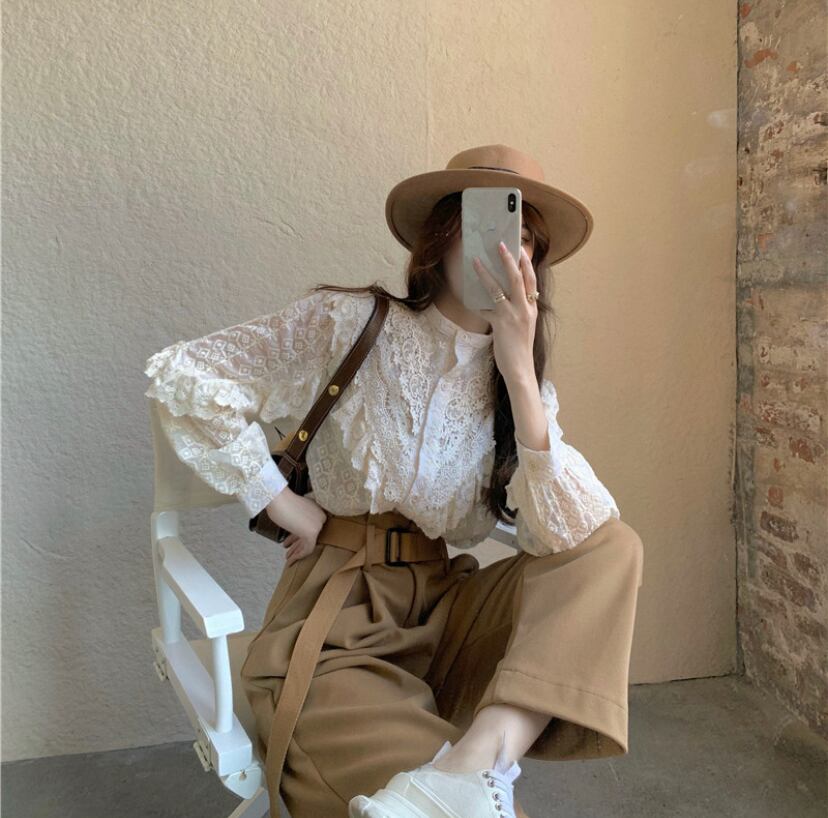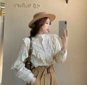 #スタンドカラー #ゆったりする #レースシャツ #フリル #無地 #気質 #シャツ