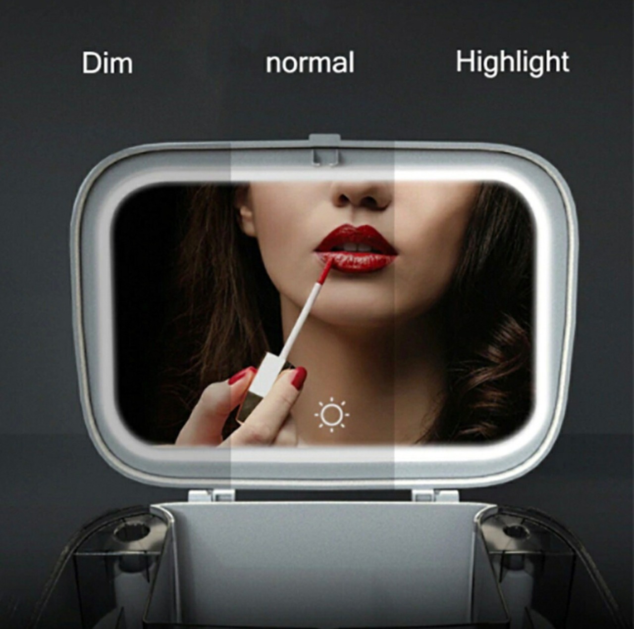 軽くタッチすればオンオフして、光度調整できます。鏡の縁にLEDが付いているので天候や照明の影響を受けずに、いつものメイクをしっかりサポートしてくれます