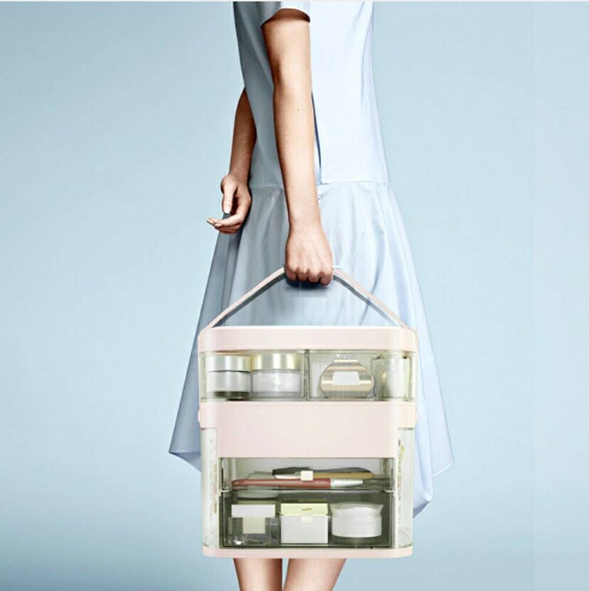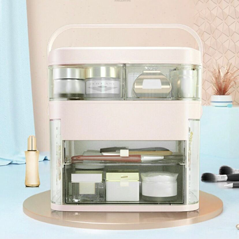 容量が多いのでメイクに使うアイテム全てを一か所に収納できる便利なアイテム。上層ボックスは高さがあるクリアケースやスキンケアボトルを収納しておくのにもぴったり!